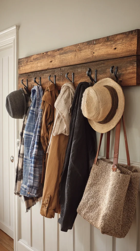 A row of hooks mounted on a beautifully finished piece of reclaimed or stained timber is one of the most practical and stylish DIY wood projects you can make for a hallway, bedroom, or bathroom. It is a weekend project that takes a couple of hours and delivers results that look like they came from a boutique interiors store.