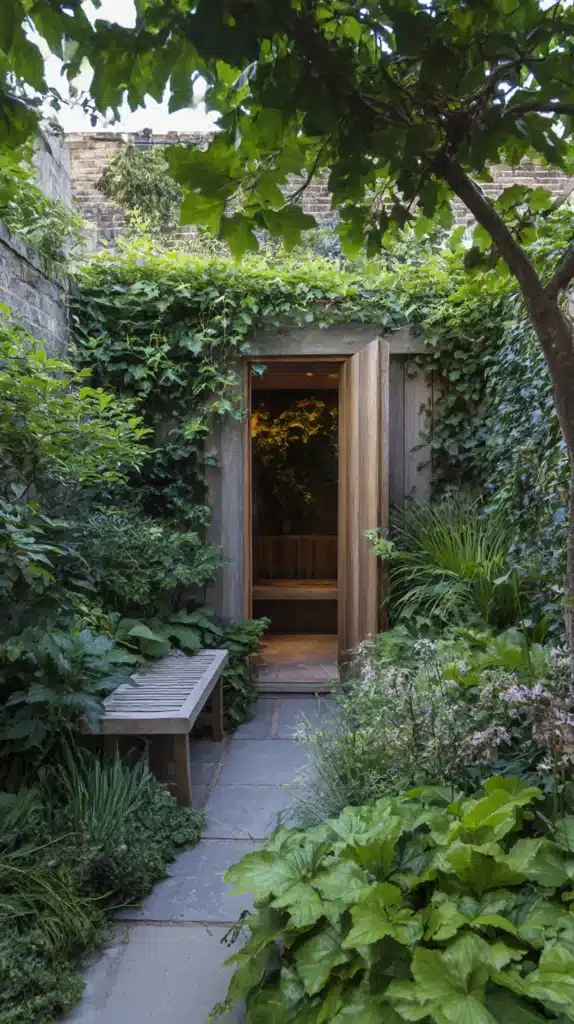 A secret garden room — an enclosed planting area accessed through a hidden gate, a gap in the hedging, or a door in a garden wall — creates a garden feature of extraordinary mystery and complete, magical botanical discovery.