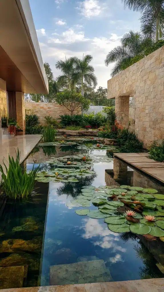 A pond surface entirely covered by lily pads loses the quality of still water reflection that makes a garden pond so genuinely beautiful. A pond surface with two-thirds lily coverage and one-third open reflective water creates the most beautiful balance of botanical abundance and reflective water surface available.