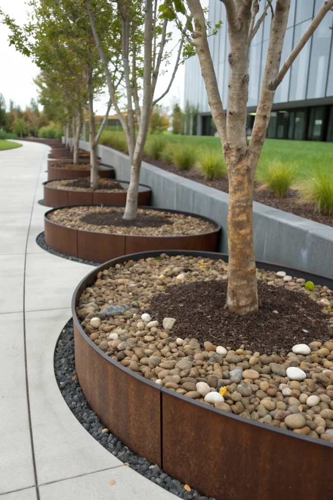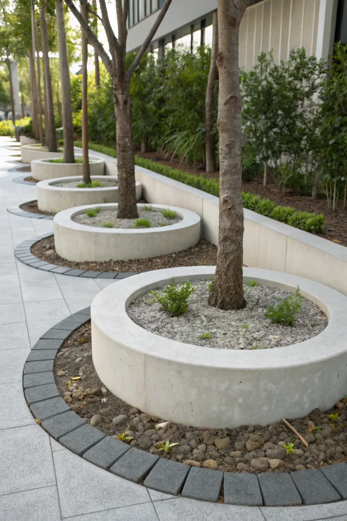 A clean, geometric concrete ring gives your trees a contemporary and organized look.