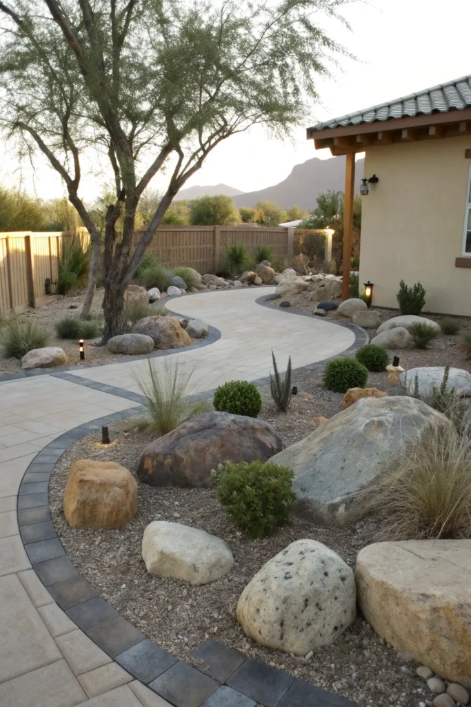 - Combine large rocks with gravel and low plants