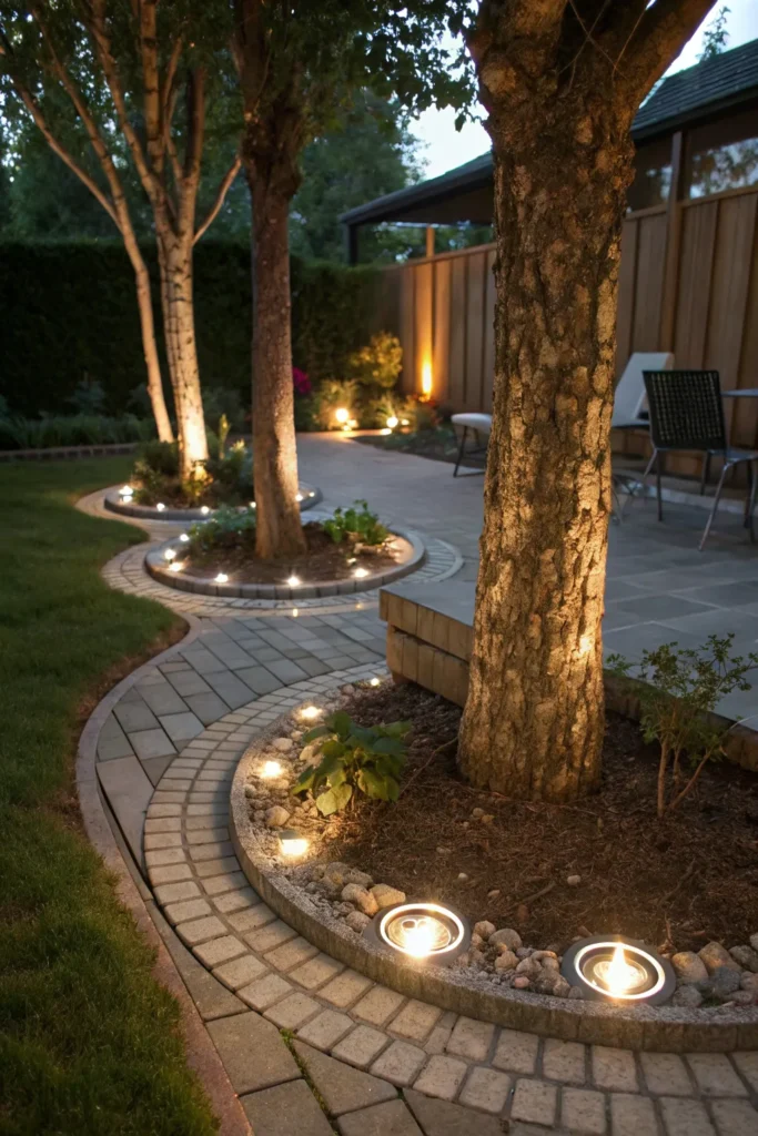 - Solar-powered or LED ground lights around the border