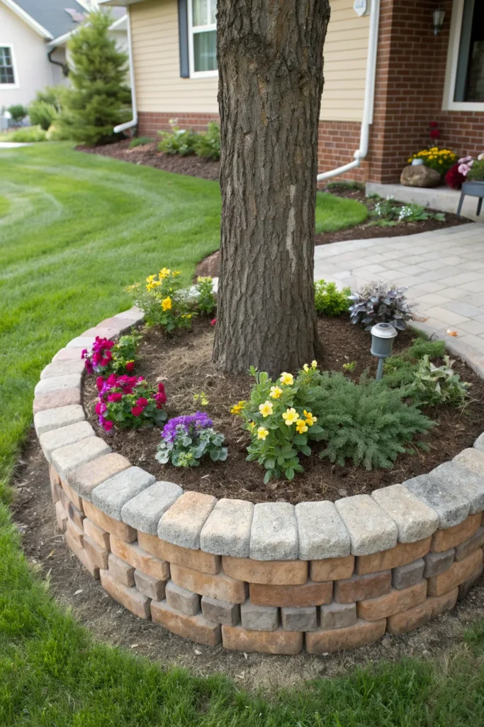 - Stone or brick raised bed around the trunk