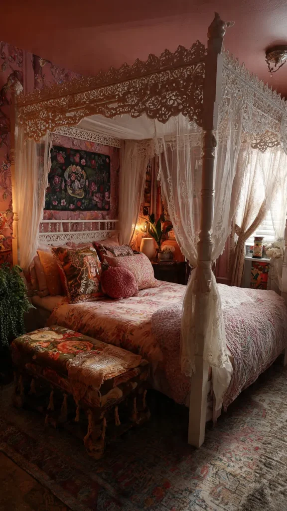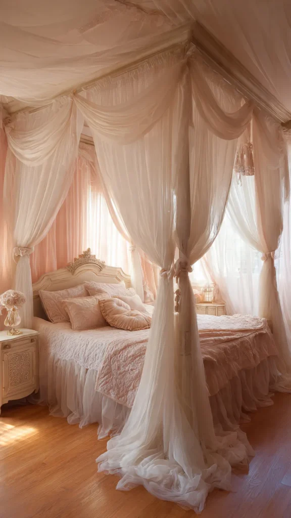 The canopy becomes the centerpiece of the room, turning the bed into a magical retreat within the retreat.