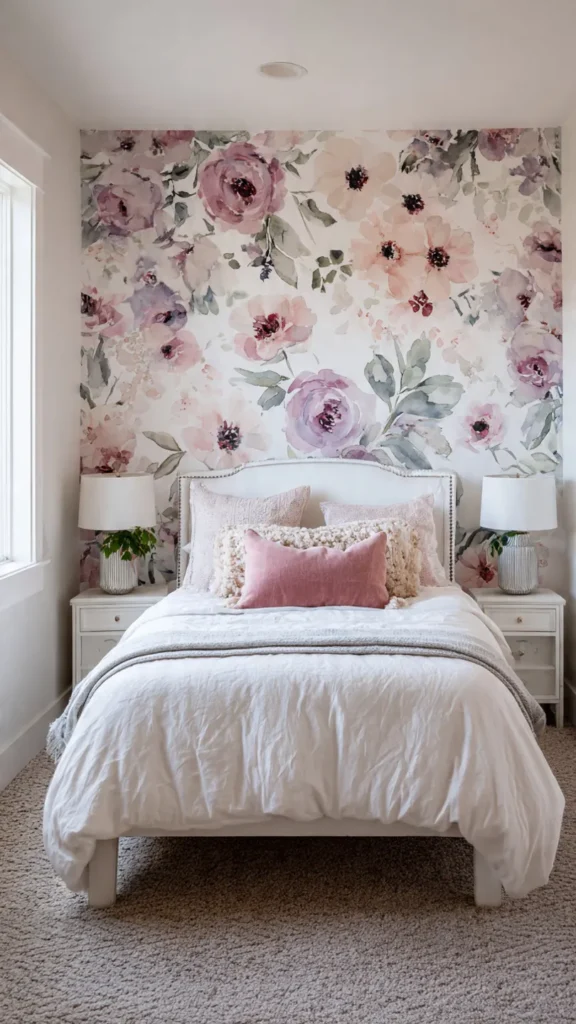 Floral wallpaper adds instant romance and visual interest. Look for designs that feel painterly and soft rather than bold and graphic.