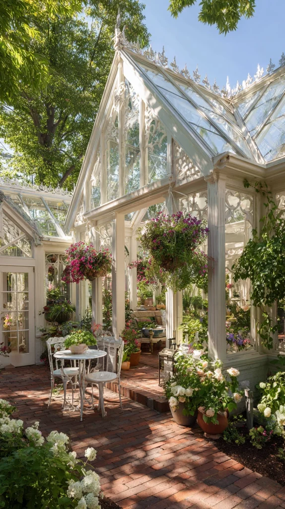 Install proper ventilation including opening roof vents and side windows that regulate temperature and humidity for both plant health and human comfort. Add a small bistro table and chairs creating an enchanting spot for morning coffee or afternoon tea surrounded by blooming plants year-round.