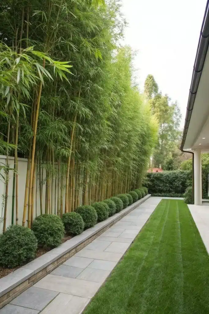 For a modern, exotic look, bamboo provides height, texture, and movement in the wind while acting as an excellent sound barrier.