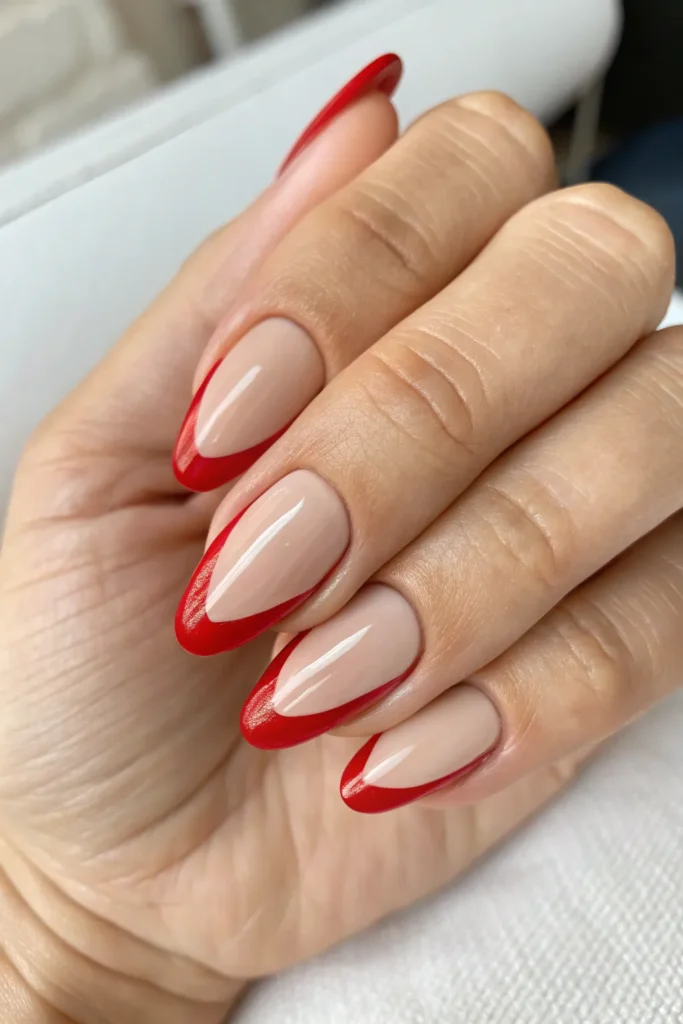 A modern take on the French manicure, red tips on a nude base make a statement while keeping things chic. This design is versatile — professional enough for work and stylish enough for special nights out. You can make the tips metallic or add a glossy border for extra flair.