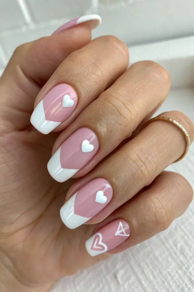 A fun update to the traditional French manicure, this design features pink tips with white heart outlines or tiny heart details. The result is soft, sweet, and playful — a perfect nod to Valentine’s Day without being over the top. Use a fine brush for precision and top it with a clear, glossy coat for a flawless finish.