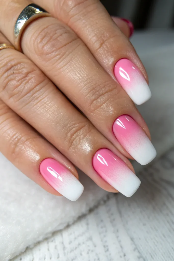 The gradient blend of pink and white is soft, feminine, and timeless. This ombré style gives a dreamy appearance — perfect for weddings, Valentine’s dates, or even everyday wear. Add rhinestones near the cuticles or a pearly topcoat for an elevated, romantic feel.
