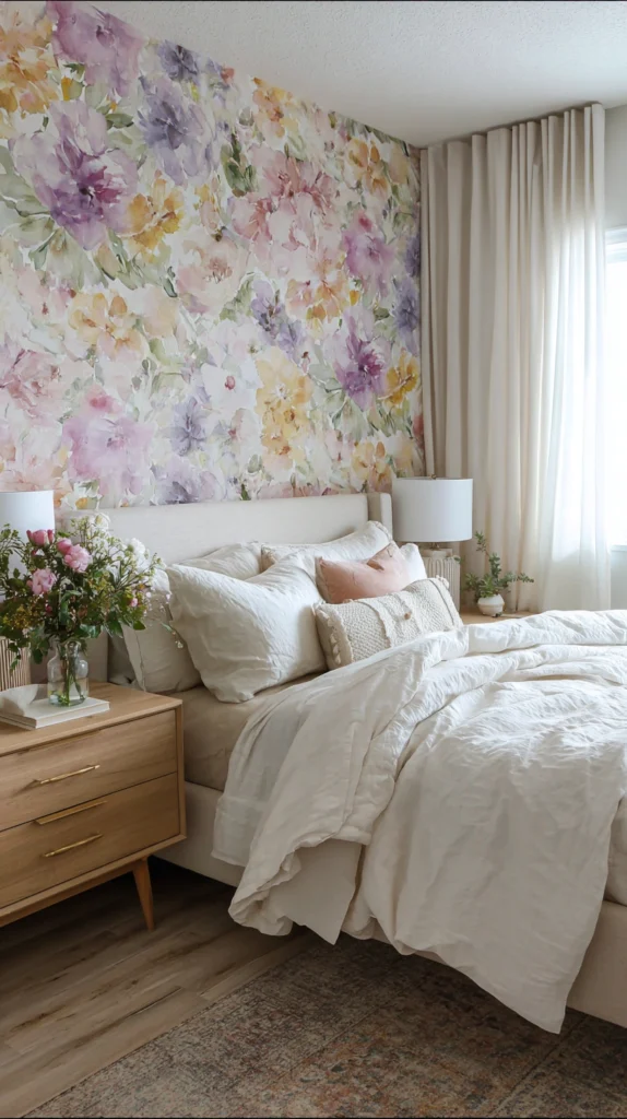 2. Try a Soft Watercolor Floral for a Dreamy Bedroom