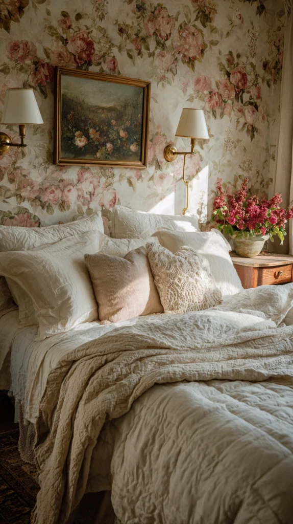 Finally, the secret to making any floral wallpaper look intentional and polished rather than busy or chaotic lies in how you coordinate it with the rest of the room. Pull one or two of the wallpaper’s secondary colors into your soft furnishings — cushions, curtains, throws, and rugs — while keeping larger pieces like sofas and beds in neutral tones. This creates a cohesive, curated look where the wallpaper feels like part of a deliberate design scheme rather than an isolated decorating decision. A little coordination goes a long way in tying the whole room together beautifully.