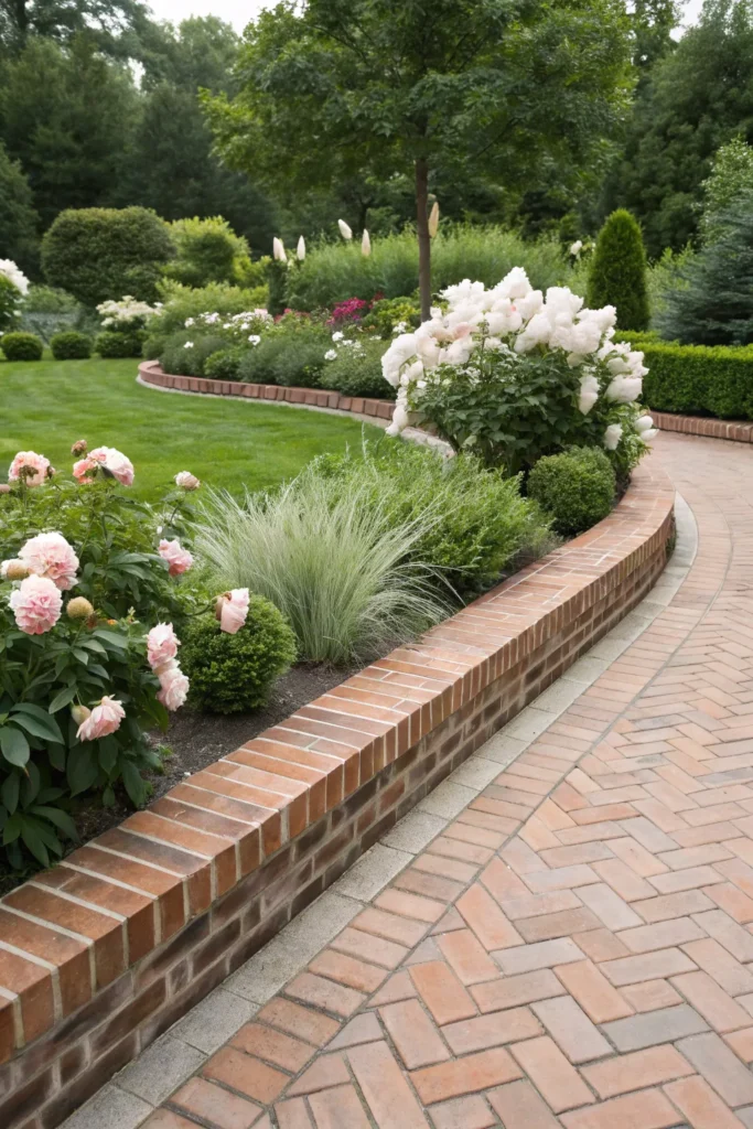 Curved terra cotta edging delivers warm Mediterranean flair with stylish garden texture and subtle elegance.
