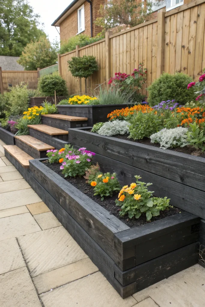 Thick timber sleepers bring a warm, natural texture that feels modern yet rustic. Ideal for multi-level planting beds.