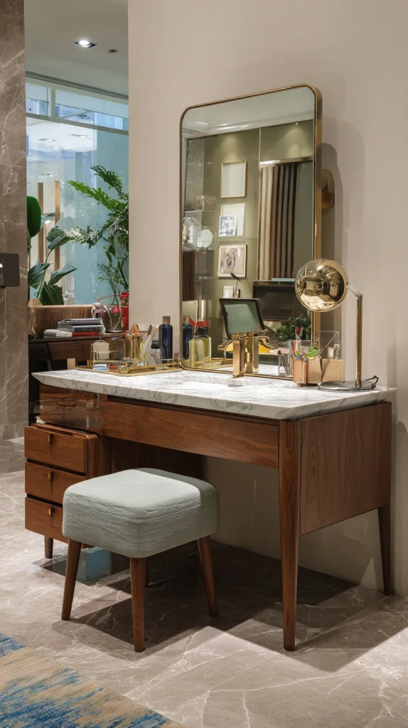 These functional additions don’t have to compromise the aesthetic — when well-integrated, they make the vanity area feel like a personal studio, thoughtfully designed around how you actually live and use the space.
