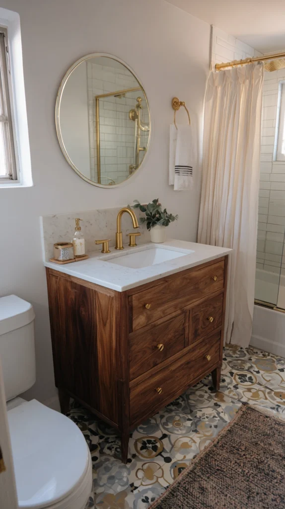 A vintage chest of drawers retrofitted with a sink, a wrought iron console with an undermount basin, or a reclaimed wood cabinet with visible joinery can make your bathroom feel like a beautifully curated room rather than a purely functional one. This approach works especially well in bohemian, farmhouse, and eclectic interiors where individuality is celebrated.