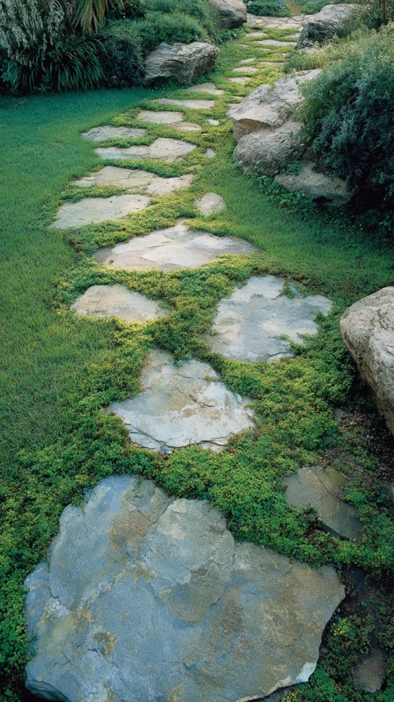 Space the stones slightly apart to encourage a natural walking pace, and allow low-growing plants like creeping thyme or moss to fill in the gaps over time. The result is a pathway that looks as though it has always been there.