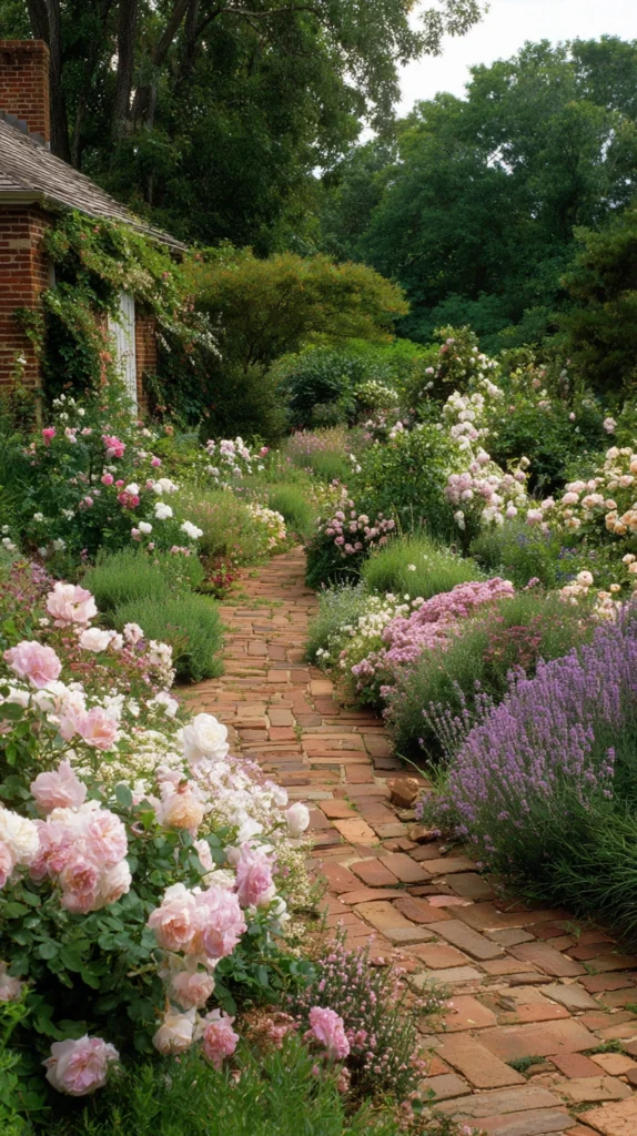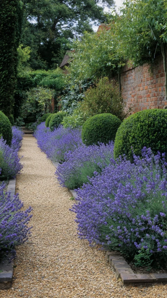 This is the kind of pathway that appears endlessly in garden magazines and country home features — and for good reason. It combines structure with abundance, formality with softness, and practicality with pure beauty. The fragrance alone, as you walk through clouds of lavender and rose, makes this pathway idea one of the most sensory and memorable available.
