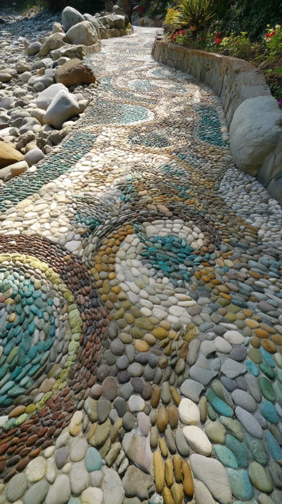 7. River Rock and Pebble Mosaic Path