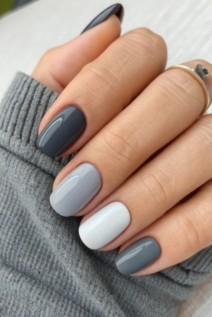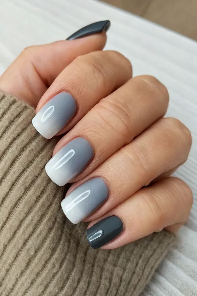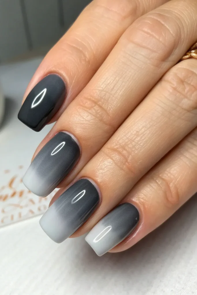 Even short nails can pull off an ombre design. A gradient from light gray at the base to dark gray at the tips adds dimension and makes nails appear longer. It’s subtle yet artistic.