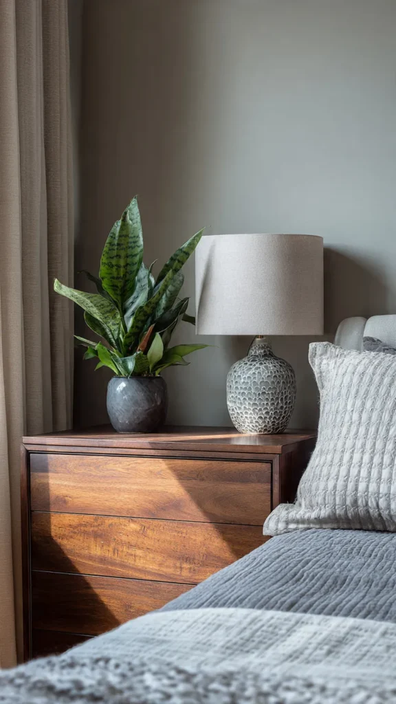 Plants and flowers bring life and freshness into a space. A small potted plant on the bedside table or dresser adds a natural touch and improves the room’s overall feel. If you prefer low-maintenance options, high-quality faux plants work just as well visually.