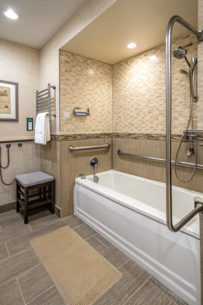 If a bathtub is necessary, enhance safety with strategically placed grab bars along both sides. Bars should be angled for comfortable gripping and reinforced for secure support. Consider walk-in bathtubs with built-in seats and low thresholds for easier entry. Textured surfaces inside the tub also reduce slipping. A handheld showerhead can make bath time easier for individuals who sit while bathing.
