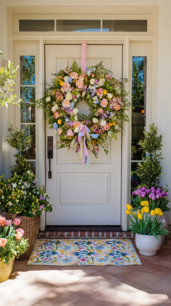 Greet mom with a beautiful spring wreath on the front door featuring fresh flowers, greenery, ribbons, or seasonal elements creating festive first impressions. Choose wreaths incorporating her favorite flowers or colors, or make DIY versions using grapevine bases and fresh materials from the garden. Add a welcoming doormat, potted flowers flanking the entrance, and perhaps a small garden flag celebrating Mother’s Day.