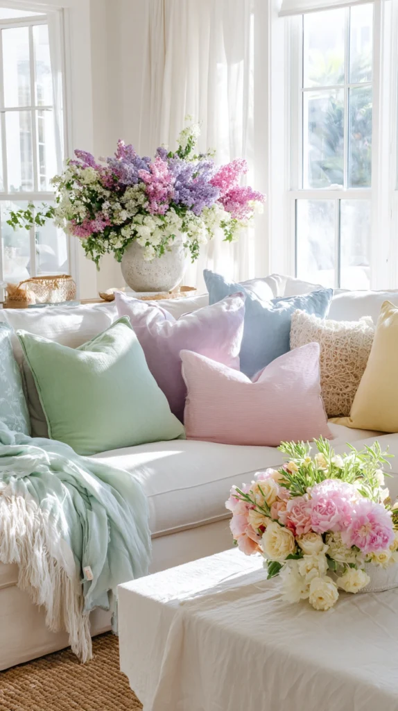 Transform living spaces with soft pastel colors through throw pillows, blankets, fresh flowers, and table linens creating spring-like freshness perfect for Mother’s Day. Choose a cohesive palette like blush pink, soft lavender, and mint green or peachy coral, butter yellow, and sky blue for coordinated elegance. Replace existing accent pieces temporarily with pastel versions creating a completely refreshed look that feels feminine and celebratory.