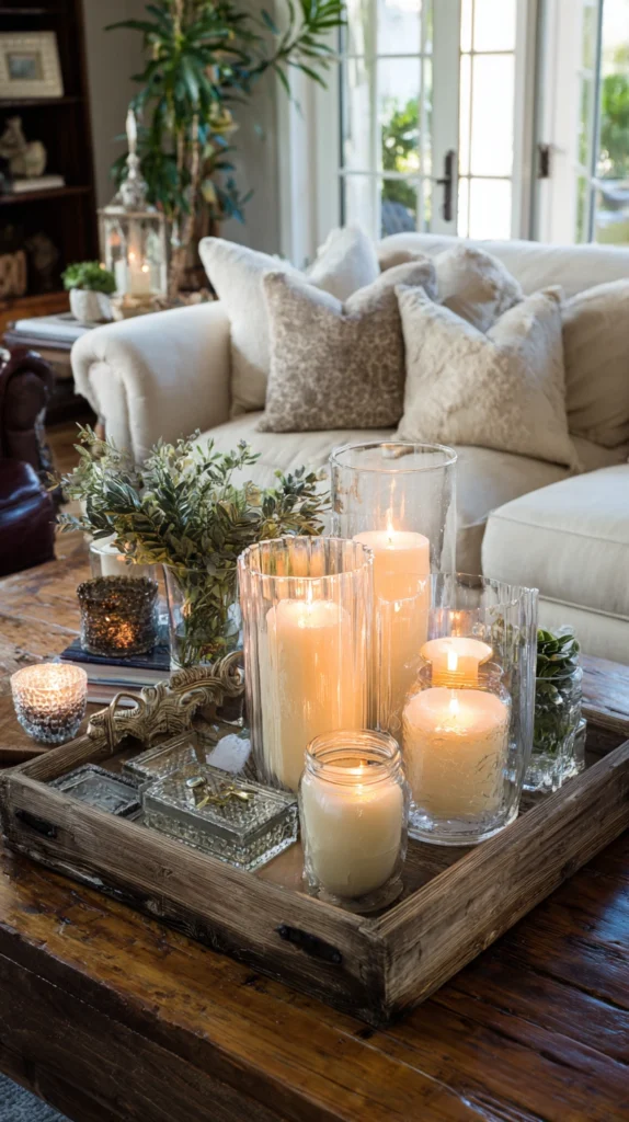 Create inviting ambiance through grouped candles in complementary scents like lavender, vanilla, rose, or citrus that fill the home with welcoming fragrance. Arrange candles of varying heights and sizes on coffee tables, dining tables, or bathroom counters creating layered displays with dimensional interest. Choose high-quality candles in beautiful containers that serve as decorative objects even when not lit.