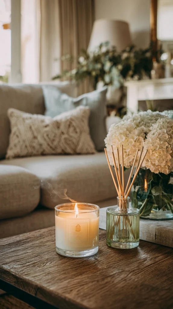 A home with a consistent, beautiful scent — the warm vanilla and sandalwood of a quality scented candle, the botanical freshness of a diffuser using quality essential oils, the specific olfactory identity of a home that is clean, warm, and aired without the artificial fragrance of commercial air freshener — creates a quality of sensory welcome that the visual environment alone cannot provide.