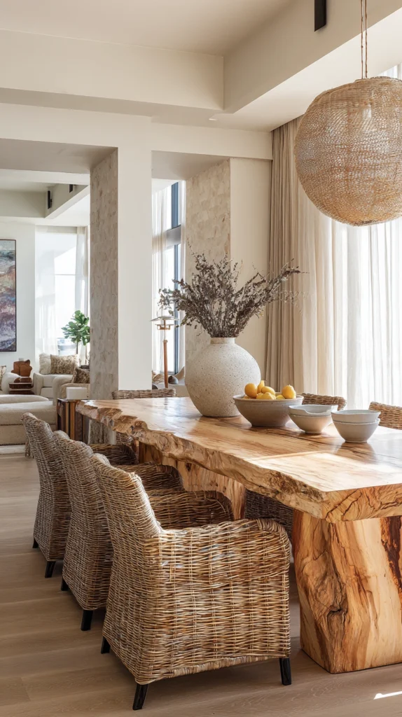 The home that uses natural materials generously — timber, stone, wool, linen, rattan, leather, ceramic — has a warmth and tactile richness that no purely synthetic interior can replicate, because natural materials carry within their surfaces the evidence of their biological and geological origins in ways that synthetic materials, however convincingly they imitate, cannot fake.