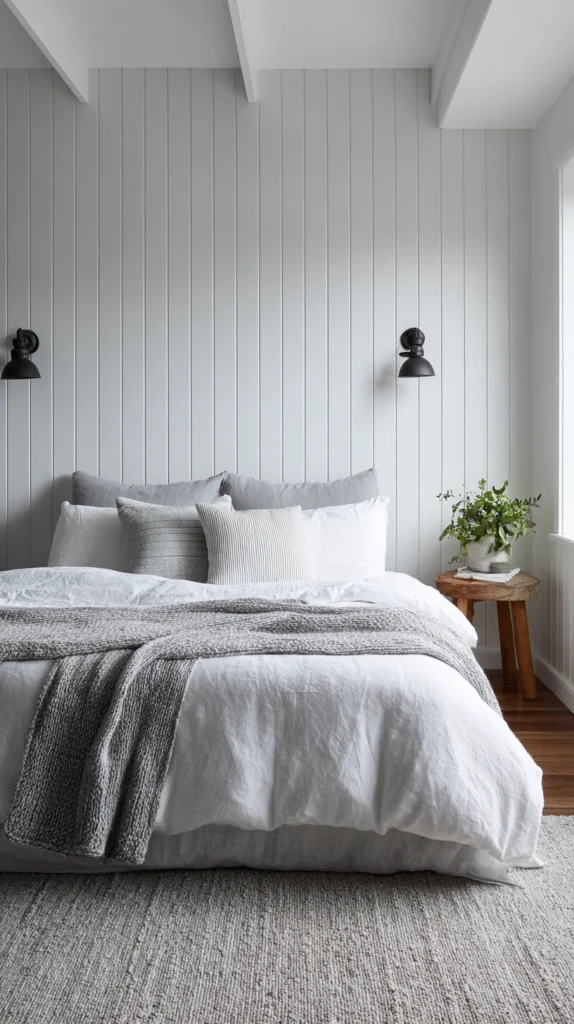 13. Slim Tongue-and-Groove Panelling Behind the Bed