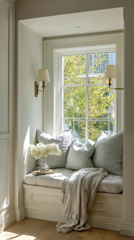 Style tip: Dress the window seat with an odd number of cushions — one large and two small, or three of the same size — rather than a symmetrical pair. A symmetrical window seat arrangement reads as formal and slightly stiff. An odd-numbered arrangement reads as relaxed and inviting, which is the quality that makes a window seat genuinely used rather than admired from across the room.