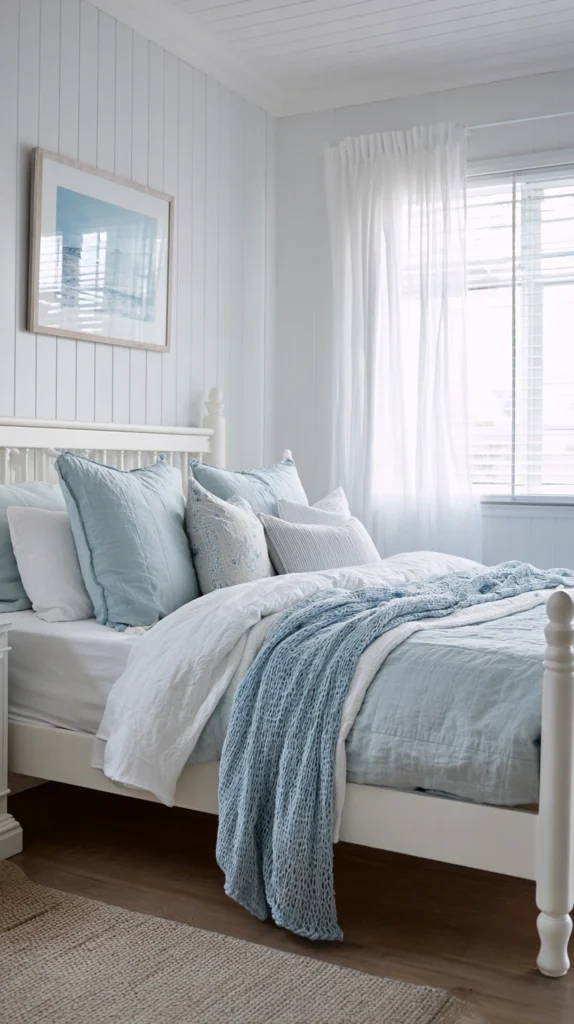 The modern cottage bedroom at its coolest is a room that feels genuinely restful — not through minimalism or clinical emptiness but through a specific combination of pale, cool tones, natural textures, and the quiet confidence of a space that has been edited rather than filled.