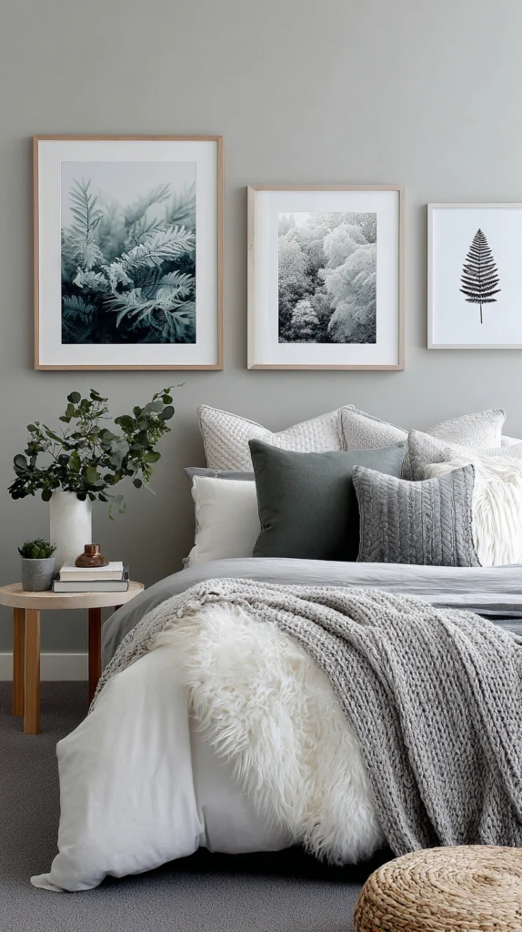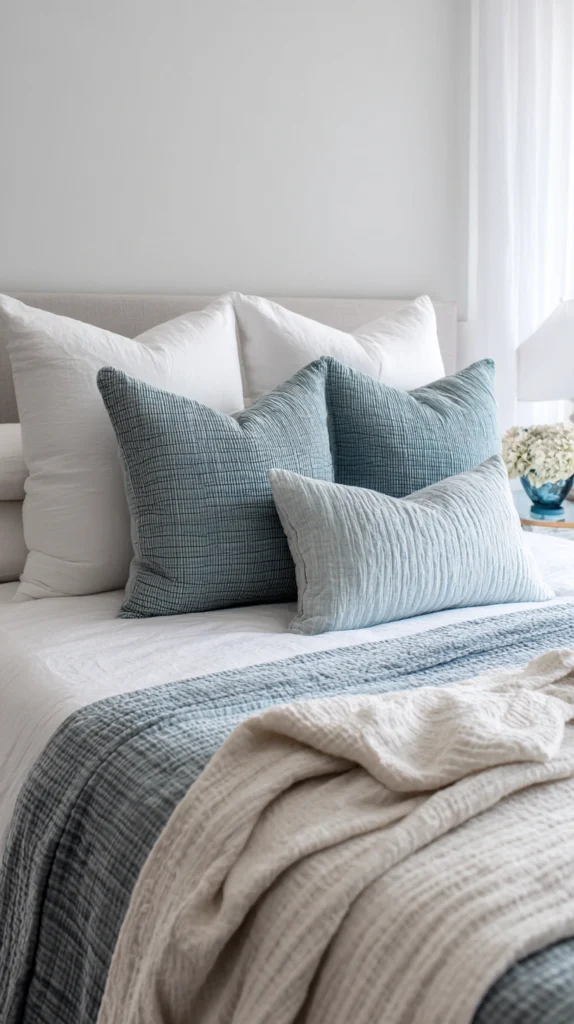 6. Layered Cool-Toned Cushions and Throws