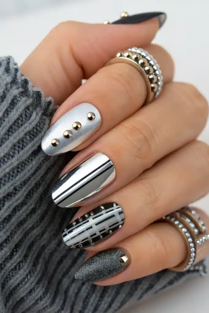 If bold colors aren’t your thing, metallic shades are your best friend. Silver, chrome, or gunmetal instantly give your nails an edgy, futuristic look. Go with a mirror-shine chrome or matte metallic for a gritty vibe.