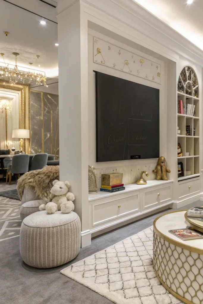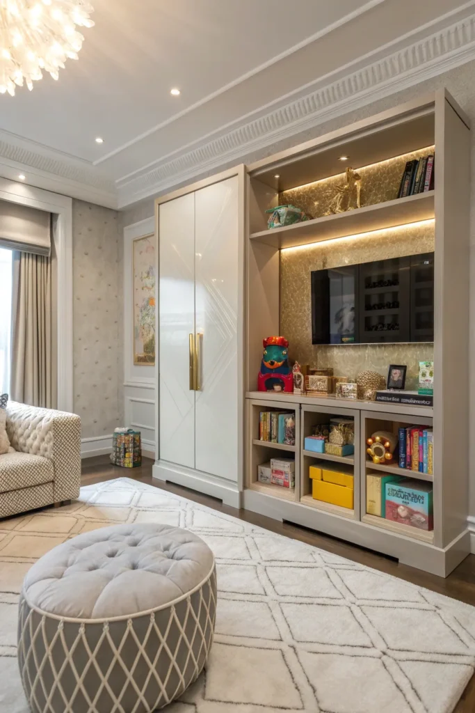 10. Hidden Toy Cabinet with Luxe Finishes