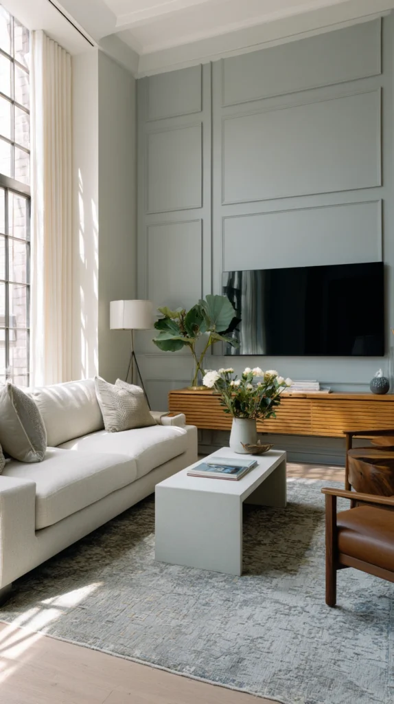 Wall paneling. whether traditional raised panel wainscoting, contemporary flat panel detailing, or a full-height shiplap or board-and-batten treatment. adds the architectural interest and visual texture to a large living room that paint and wallpaper alone cannot always provide.