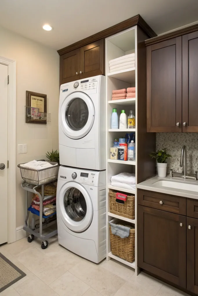 Maximize functionality in tight spaces with vertical washer and dryer arrangements and smart storage systems.
