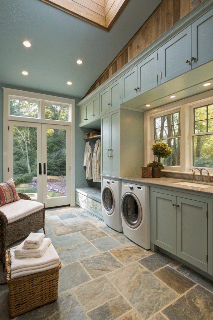Transform laundry duties into a relaxing experience with spa-like finishes and calming design elements.