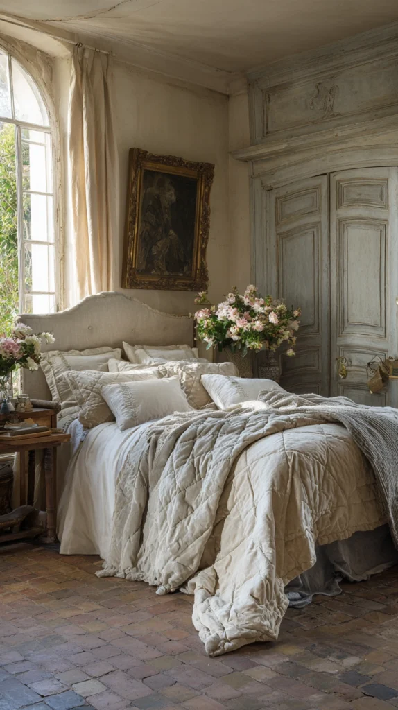 For a bed that feels like it belongs in a French chateau or a high-end villa, use a quilt or bedspread that is significantly larger than the bed, allowing the corners to “puddle” on the floor. This “excess” fabric creates a sense of opulence and grandeur. This works best in larger bedrooms where the extra fabric won’t become a tripping hazard, and it looks best in heavy, draped fabrics like cotton velvet or washed linen.
