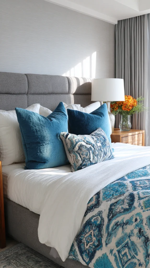 Sometimes, the “wow” factor comes from a single, final layer. Instead of a mountain of small “throw pillows” that end up on the floor, use one extra-long (36 to 48 inch) lumbar pillow. This “finishing touch” spans the width of the bed and ties all the other layers together. Choose a bold texture—like a chunky bouclé or a hand-woven kilim—to make it the undisputed star of the arrangement.