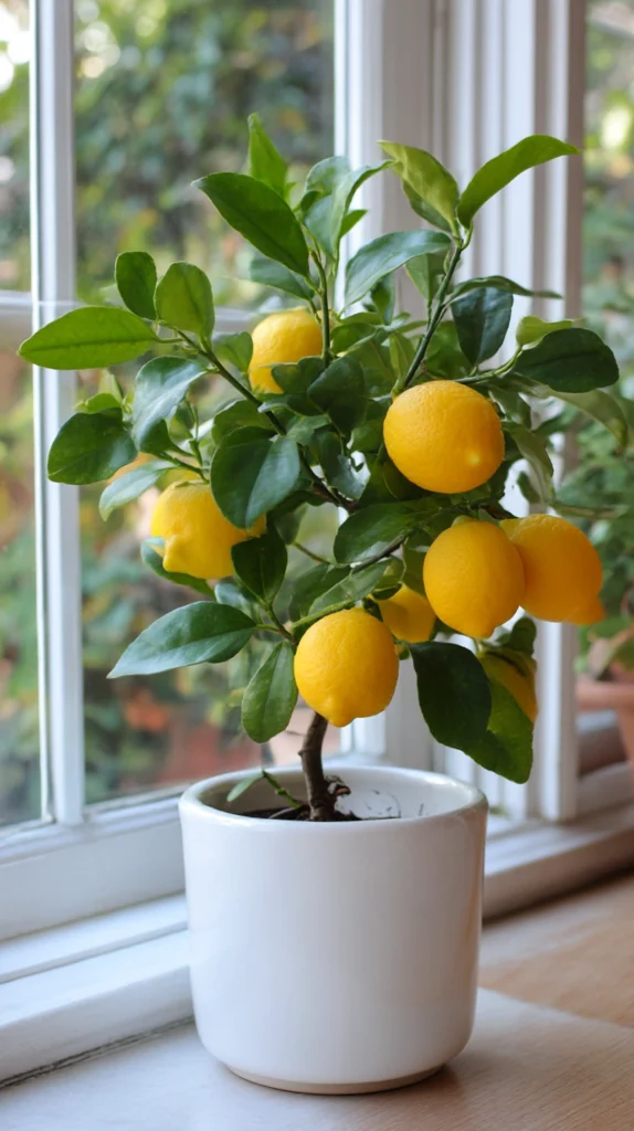 Style tip: Display the lemon tree in a simple white ceramic or terracotta pot rather than leaving it in its plastic nursery container. The pot is as visible as the tree itself on a kitchen windowsill, and the right pot makes the whole display look considered rather than like a plant that was bought and placed without thought given to how it would look in its position.