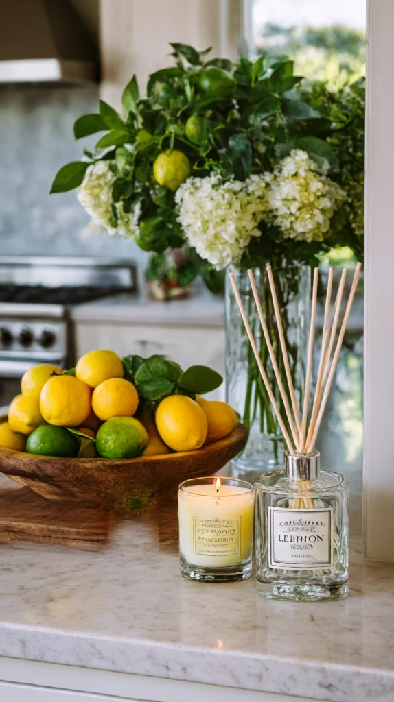 Style tip: Choose a lemon scent described as clean and zesty rather than sweet or dessert-like. A sharp, fresh lemon fragrance suits a kitchen and reinforces the clean, bright quality of the decor theme. A sweet, heavy lemon scent reads as artificial and works against the naturally fresh atmosphere the kitchen is intended to create.