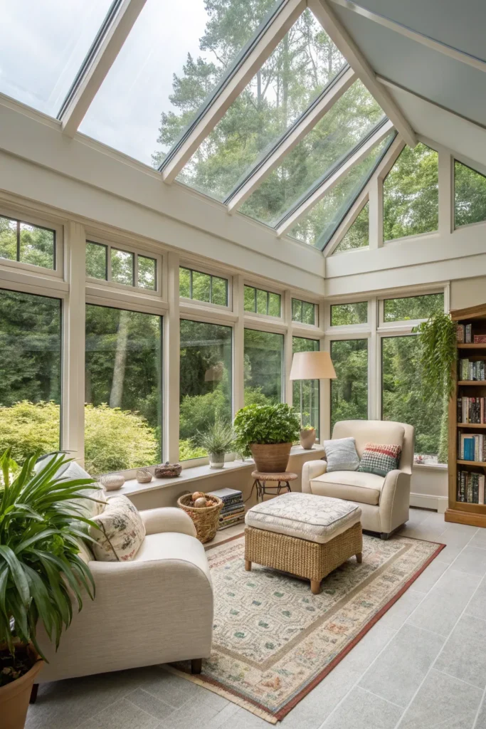 - Light-colored furnishings and decor that enhance the bright, airy feeling
