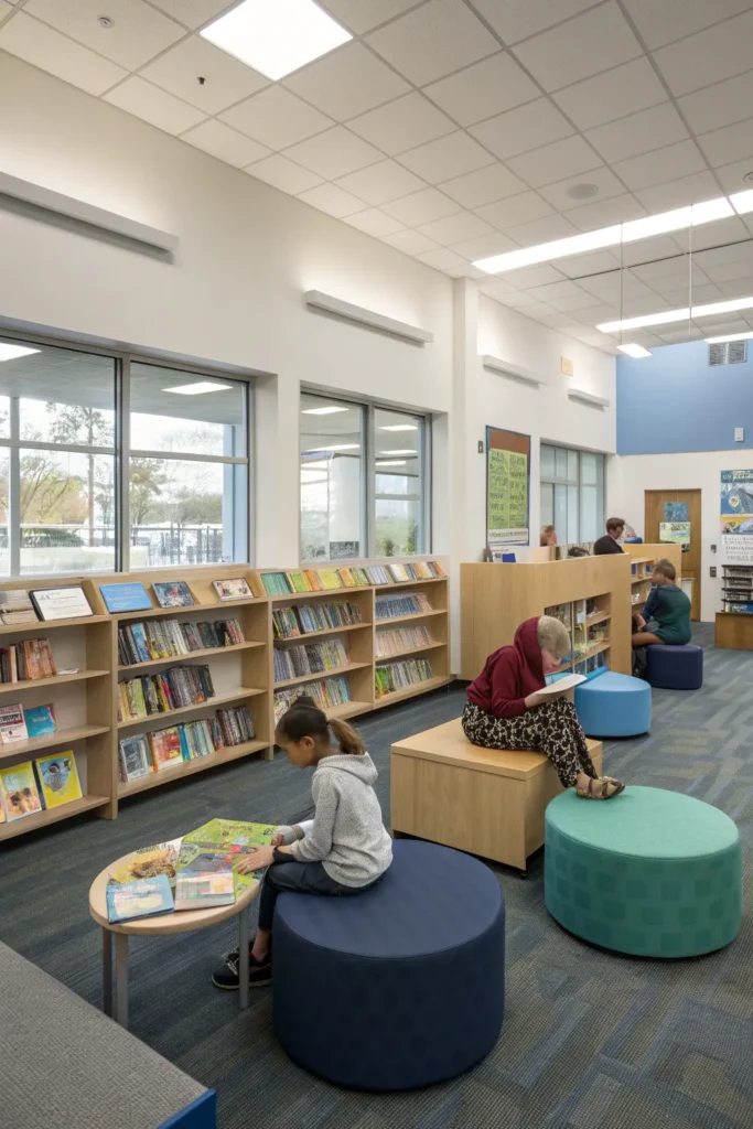 - Ceiling fans or climate control maintaining comfortable reading temperatures