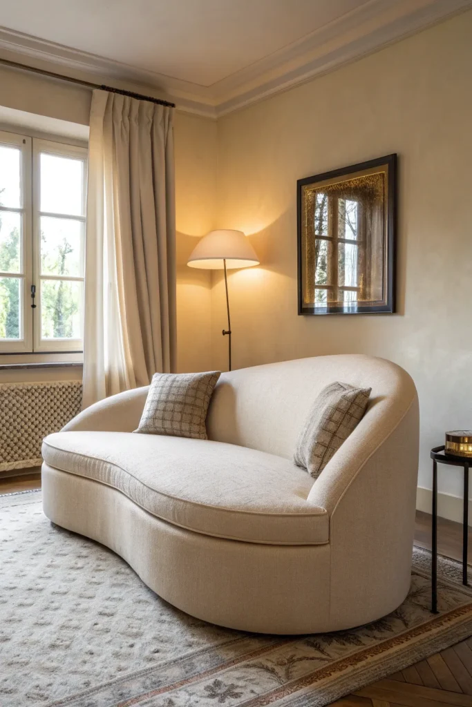 Curved designs also tend to feel softer and more inviting, which can make your small living room seem more comfortable rather than merely efficient.