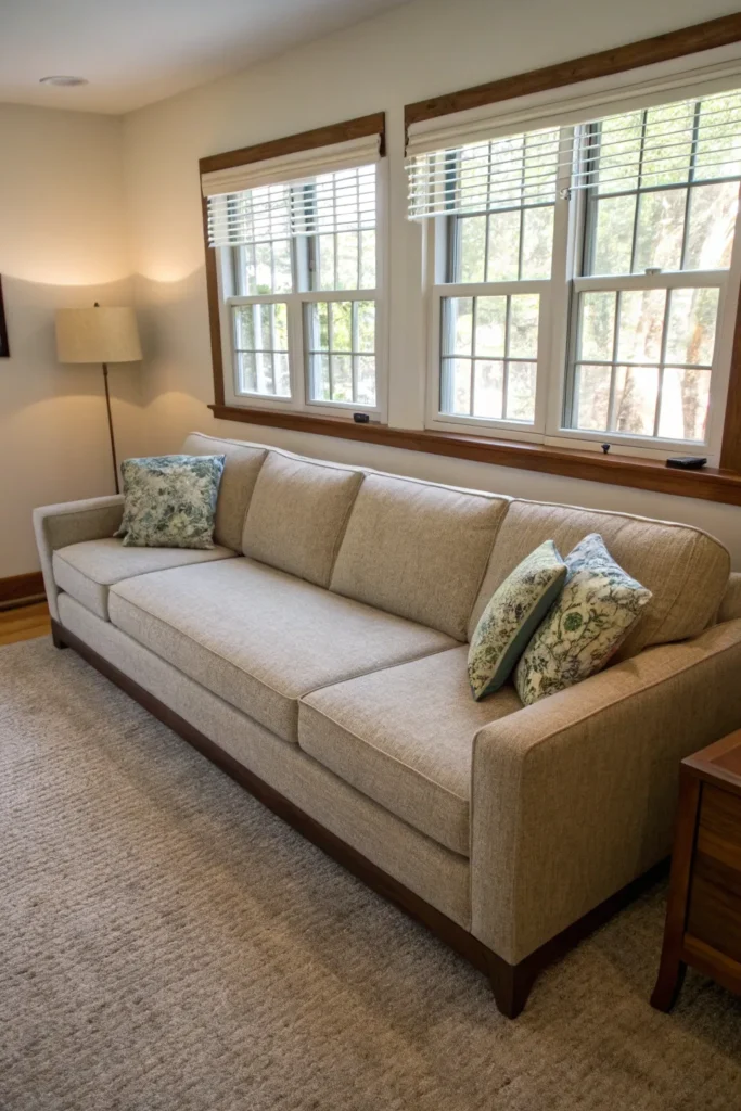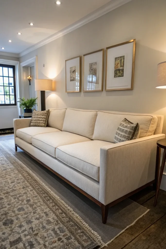 By choosing a sofa that emphasizes horizontal lines, incorporates visual lightness through exposed legs or minimal arms, and respects the scale of your space, you create a living room that feels comfortable, stylish, and surprisingly spacious despite its modest square footage.