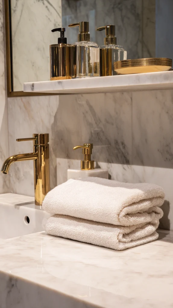 Style tip: Choose one material for all bathroom accessories and use it consistently — all marble, all brass, all matte black — rather than mixing materials across the set. Mixed accessory materials look assembled from whatever was available. A consistent material across every small bathroom object looks curated and intentional, which is the quality that distinguishes a luxury bathroom from a merely adequate one.