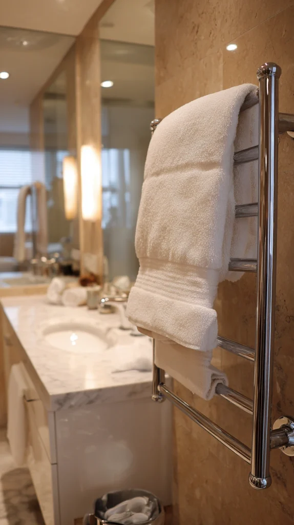 A towel that has been hanging on a heated rail is a different object from one that has been folded on a shelf. The warmth, the slight crispness from the drying heat, and the comfort of wrapping in something warm directly from a heated surface is genuinely luxurious in a way that is physically felt rather than visually appreciated — which makes it one of the most experientially valuable upgrades on this list.